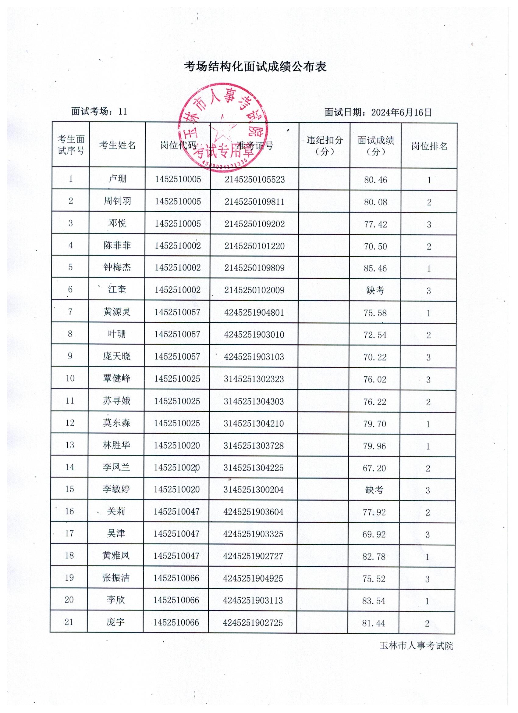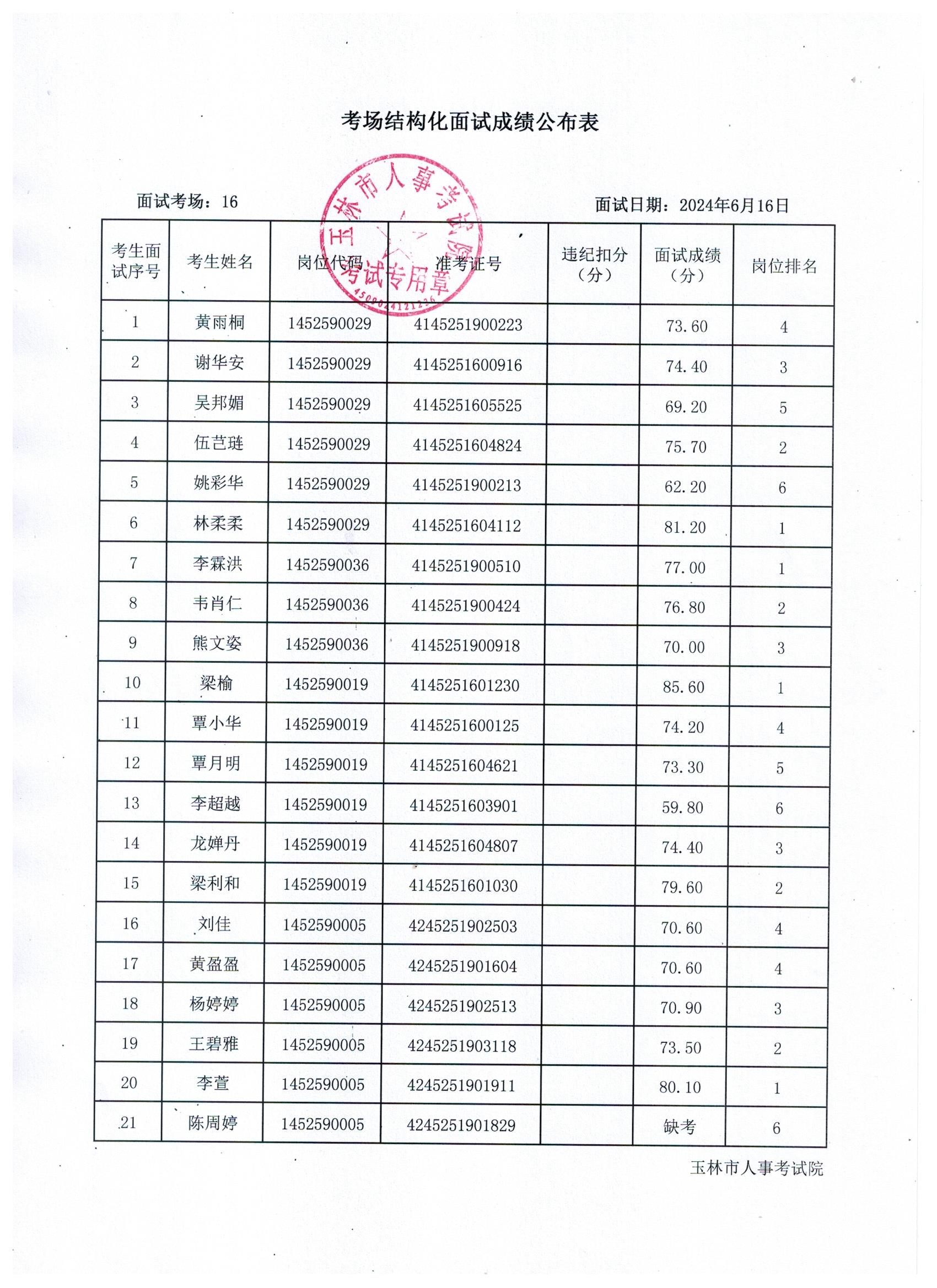 原文標(biāo)題:2024年玉林市直(含玉州區(qū)、福綿區(qū)、玉東新區(qū))事業(yè)單位公開(kāi)招聘人員面試成績(jī)公布(6月16日)
