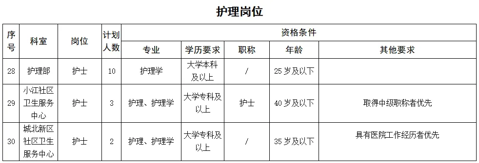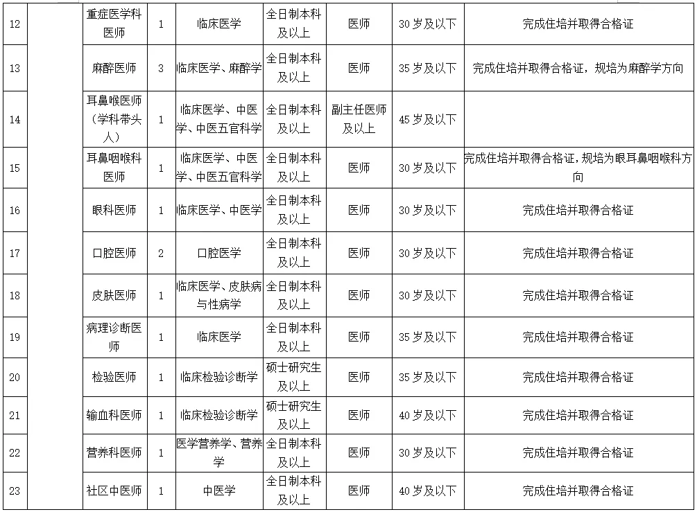 備注:醫(yī)學類碩士研究生及以上學歷、醫(yī)學類副高及以上職稱者不受招聘專業(yè)及名額限制。