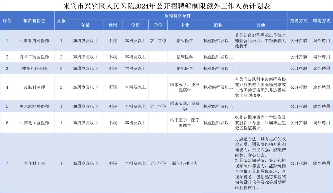 原文標題:速看!來賓市興賓區(qū)人民醫(yī)院招聘編制限額外工作人員10名