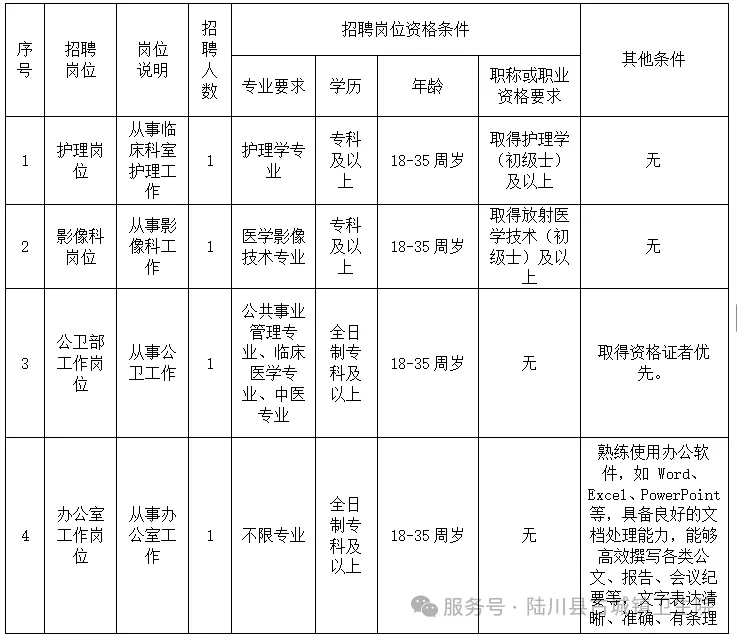 2、報(bào)名地點(diǎn):陸川縣古城鎮(zhèn)衛(wèi)生院綜合大樓六樓行政辦公室。