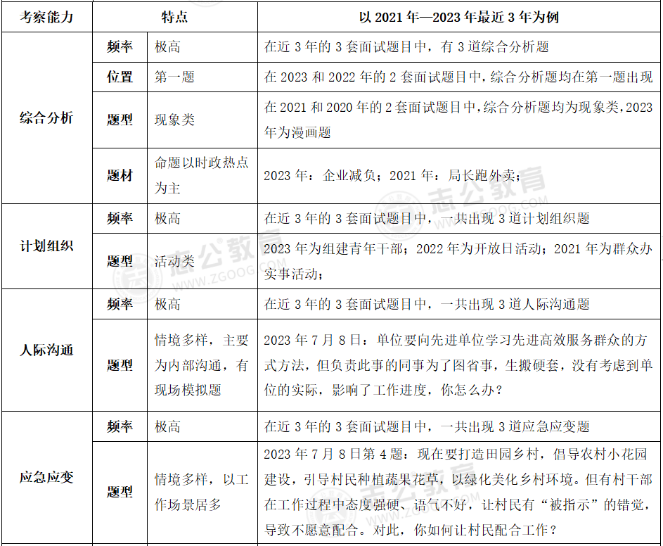 貴港事業(yè)單位面試主要采用結(jié)構(gòu)化面試形式;審題時間:2分鐘;答題時間:12分鐘;考查題量:4題為主。考務(wù)情況:考官不讀題、統(tǒng)一計時、超時會提醒??疾轭}型:綜合分析(極高)、計劃組織(極高)、人際溝通(極高)、應(yīng)急應(yīng)變(較高)、貫徹執(zhí)行(較高)、自我認知(一般)。
