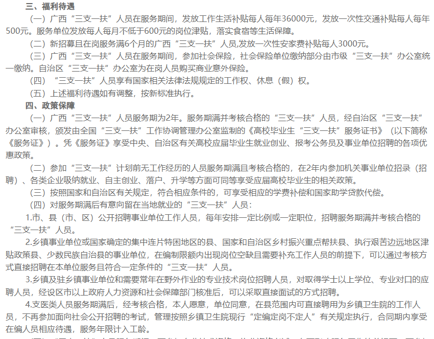 2025年廣西三支一扶待遇