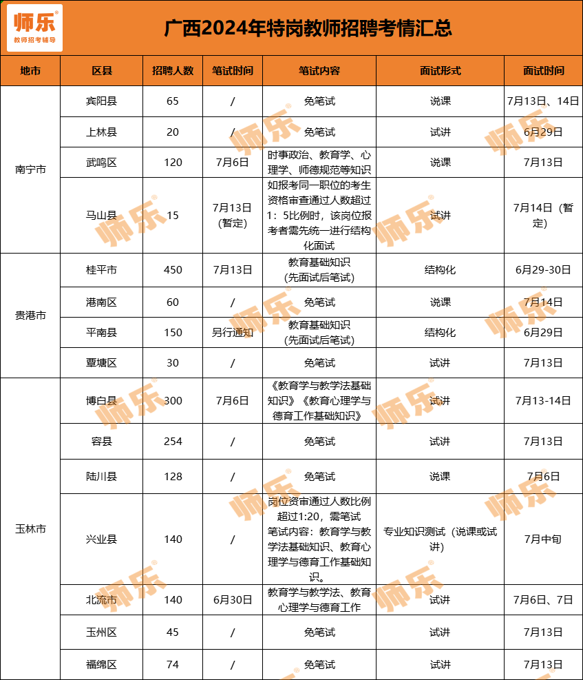 貼心的師師為大家整理了24年廣西特崗教師考情匯總表。