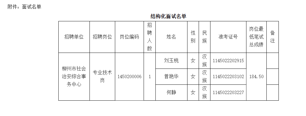 2025年中共柳州市委政法委員會(huì)所屬事業(yè)單位柳州市社會(huì)治安綜合事務(wù)中心公開招聘工作人員面試公告