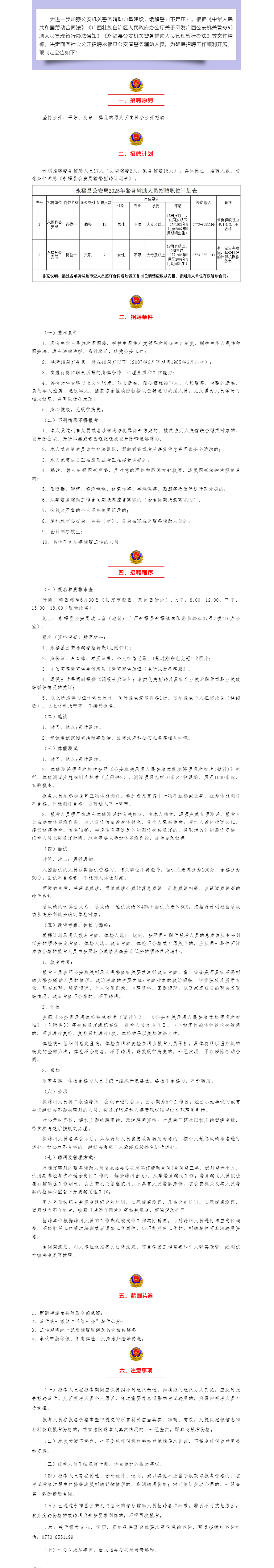 原文標題:永??h公安局公開招聘若干名警務輔助人員