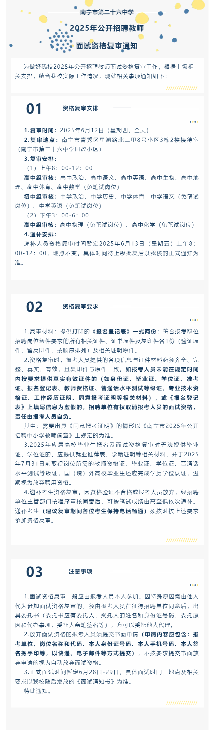 原文標題:南寧市第二十六中學2025年公開招聘教師面試資格復審通知
