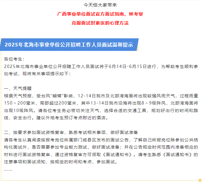 后天面試!快看25年廣西事業(yè)單位面試考場示意圖、克服面試緊張心理方法!