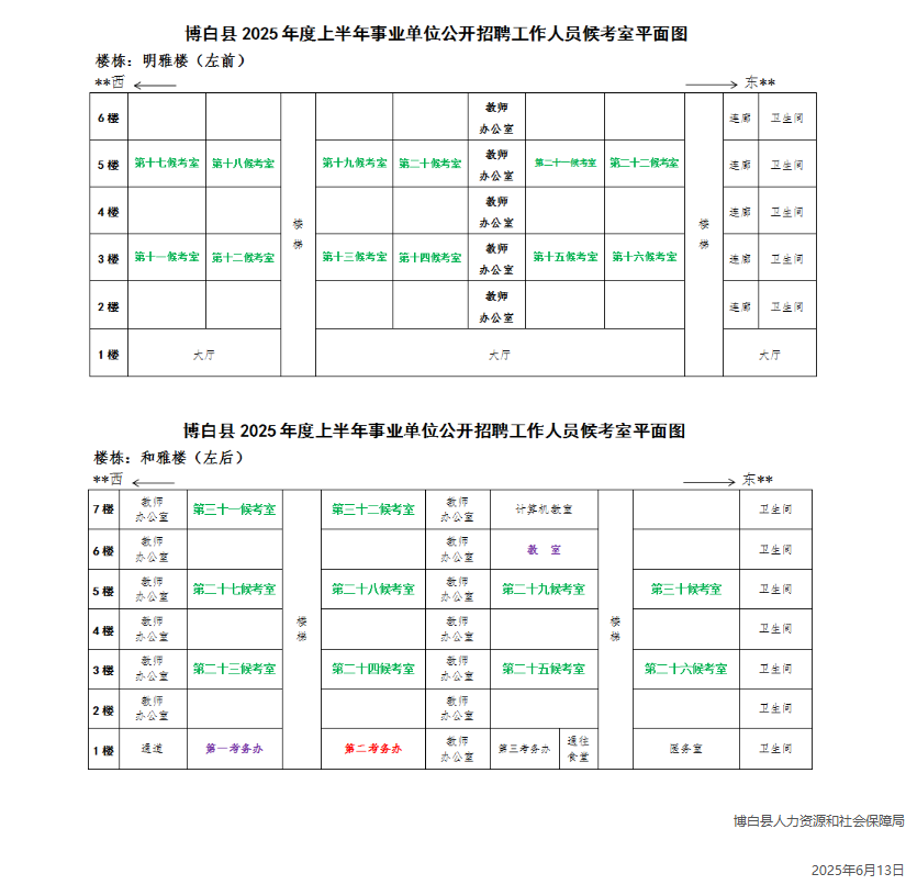 二、考點(diǎn)候考室分布示意圖