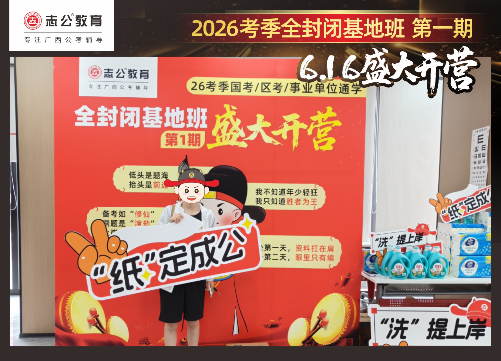 最后,要進行的是摸底考試,志公教育26考季全封閉基地班第1期確實火爆,但是要知道廣西公考每年競爭對手更多人,只有通過考試才能知道自己在這么多學員中的水平情況,入營時的最初水平,更能知道自己在接下來的學習中是否有進步!