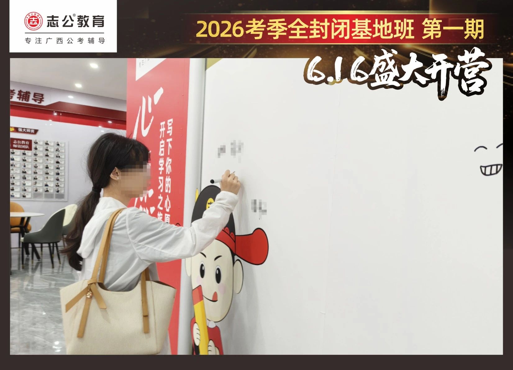 由于這段時間受臺風影響,南寧迎來下雨天,但學員們滿懷先一步備考,快一步成功圓夢的滿滿炙熱信心,早早就在志公教育(中關村)全封閉基地前臺等候,6月16日,志公教育26考季全封閉基地班第1期的學員們齊聚一堂,正式開啟他們的公考備戰(zhàn)之旅。簽到環(huán)節(jié)作為基地班課程的第一站,不僅是對學員們的歡迎儀式,更是他們邁向夢想的第一步。