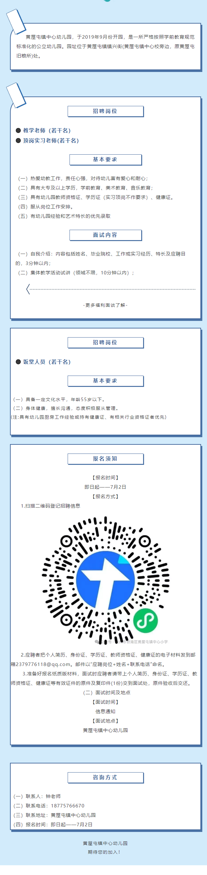 原文標(biāo)題:黃屋屯鎮(zhèn)中心幼兒園2025年春招聘教學(xué)老師、頂崗實(shí)習(xí)老師公告