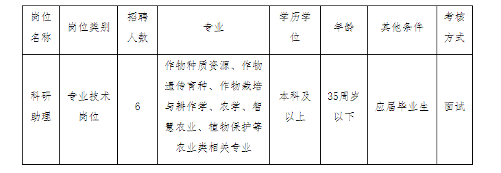 我所設有4個科室、1個種質(zhì)庫、1個中心和10個研究團隊。根據(jù)工作需要,現(xiàn)面向社會公開招聘編制外工作人員6名?,F(xiàn)將有關事項公告如下: