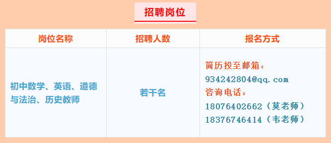 報(bào)名實(shí)行網(wǎng)絡(luò)形式,有意者請(qǐng)將簡(jiǎn)歷投至學(xué)校郵箱934242804@qq.com。具體面試時(shí)間電話通知。