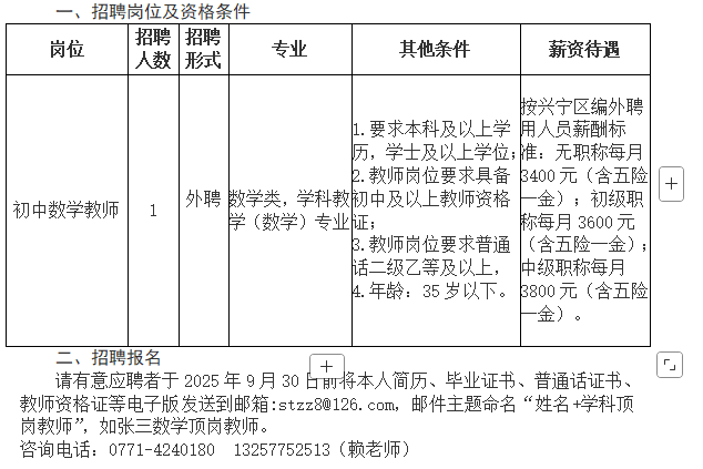 原文標(biāo)題:南寧市興寧區(qū)三塘鎮(zhèn)四塘中學(xué)2025年秋季學(xué)期招聘啟事