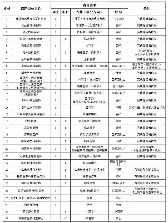 根據(jù)醫(yī)院發(fā)展需要,現(xiàn)面向社會招聘各專業(yè)人才,有關(guān)招聘事項公告如下: