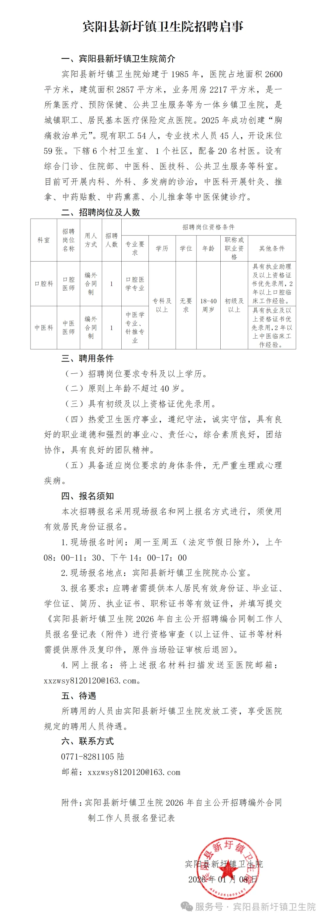 原文標(biāo)題:2026年賓陽(yáng)縣新圩鎮(zhèn)衛(wèi)生院衛(wèi)生專業(yè)技術(shù)人員招聘簡(jiǎn)介