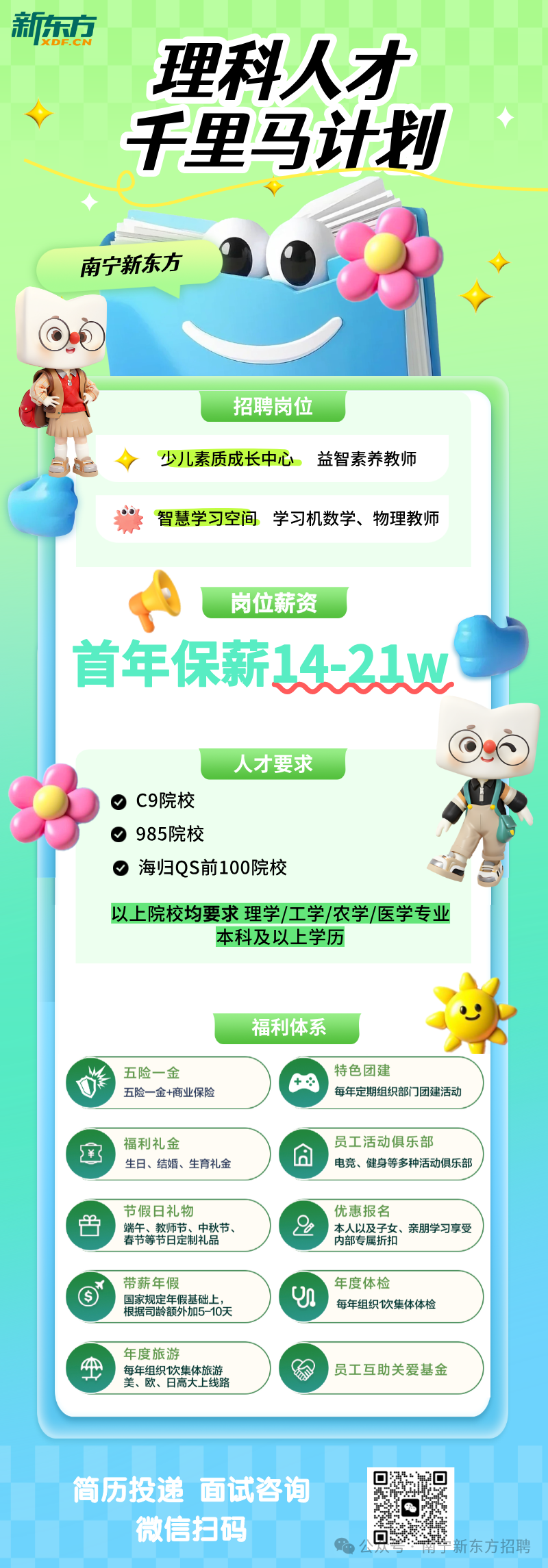原文標題:南寧新東方急招理科教師 | 首年保薪12-21萬 雙休 五險一金 年度帶薪旅游