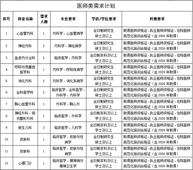 為進一步完善現(xiàn)有人才隊伍,促進醫(yī)院學科發(fā)展,提升醫(yī)院綜合實力,因業(yè)務發(fā)展需要,現(xiàn)面向社會進行公開招聘,具體招聘崗位如下: