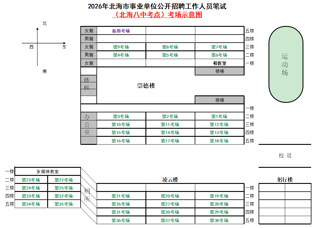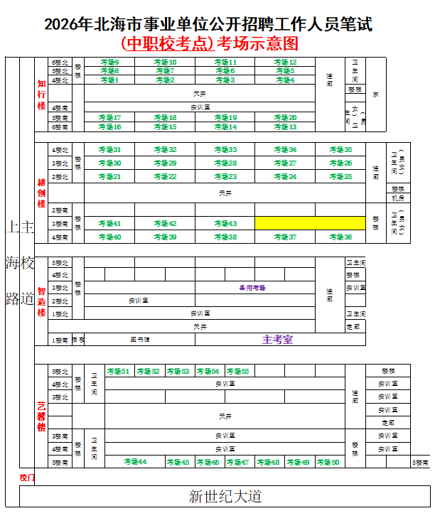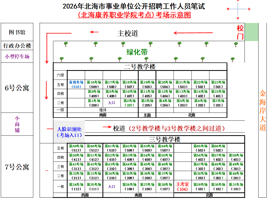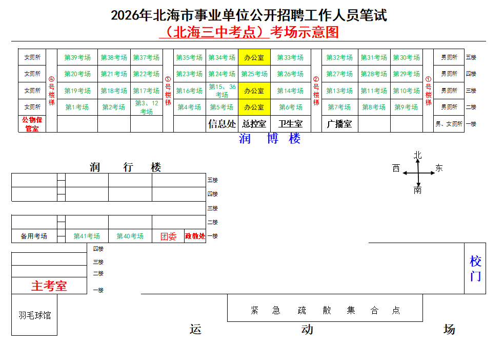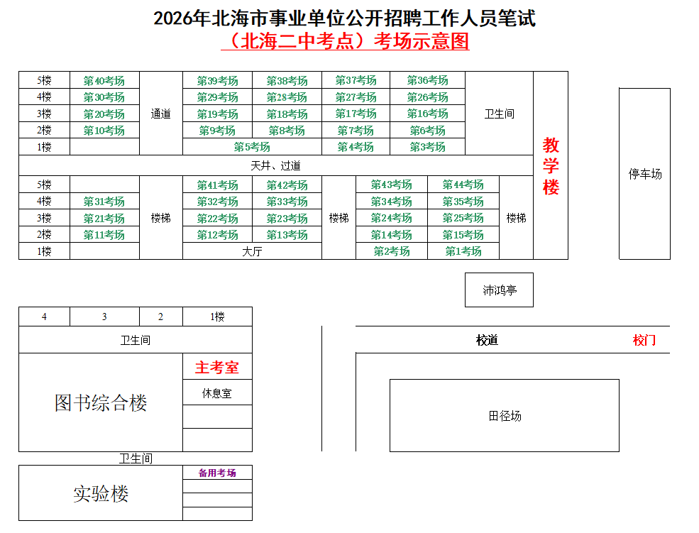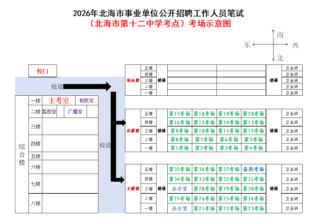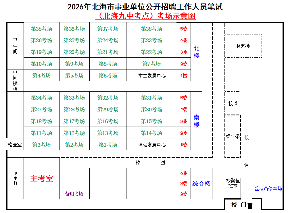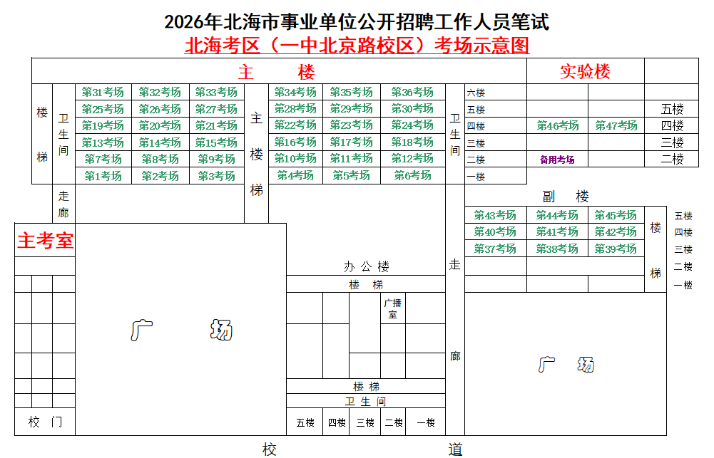 (一)3月28日進行綜合管理類(A類)考試,北海市共設一個考點,考點考場布置為: